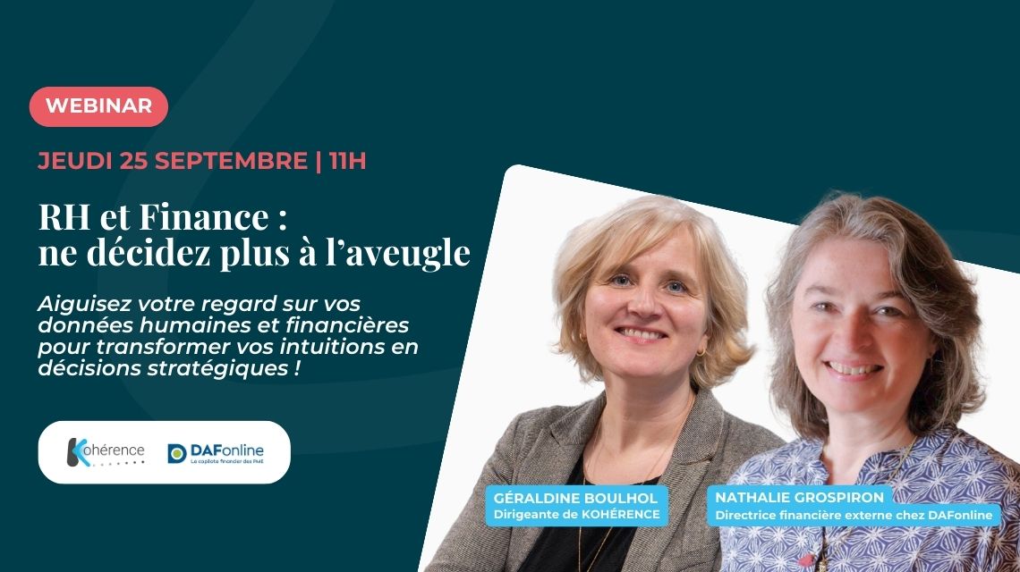 C’est le sujet que nous avons exploré lors du webinar corganisé par Kohérence et DAFonline, aux côtés de Nathalie Grospiron, directrice financière externe, et Géraldine Boulhol, fondatrice de Kohérence : “RH & Finance : ne décidez plus à l’aveugle.”